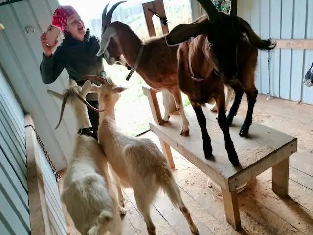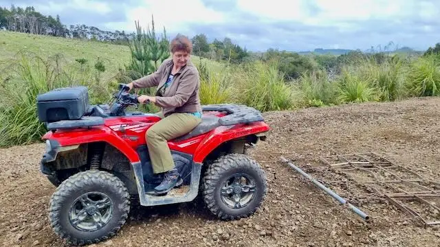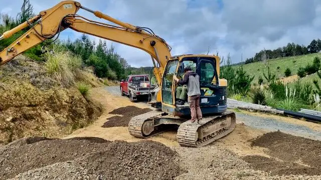 When we came back to the farm, Eri gave me a crash course in riding and steering the quad bike. We left the race course for another time, but Igi could use our help at the site of the new shed. He was distributing and planing new gravel with an enormous excavator. This meant crash course number two for me: lifting and emptying a shovelful of gravel. Holy smokes! Am I ever glad I don’t have to do this for a living!