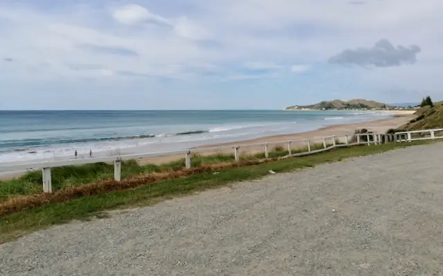 The day didn’t start as warm as the previous days. But, optimist that I am, I donned my bathing suit and summer clothes, for I was heading into the East Coast section of the North Island where there reportedly are New Zealand’s best beaches. Thus I finally got to have a swim a second time in the South Pacific, more specifically at Wainui Beach, near Gisborne. Although the water’s temperature was nowhere near Caribbean, lots of other people had the same idea and enjoyed being in, on, or at the sea. A good thing, too, to enjoy it when we did because the weather turned by noon and ushered in the wet part of the long Labour Day weekend.